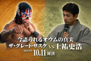 ザ・グレートサスケのトークライブシリーズ第二弾!対談相手は、元・オウム真理教で、現在はひかりの輪代表・上祐史浩氏!どんなトークになるのかは、一切展開予測不能!!!スピリチュアルな話題から、政治、プロレス、UFOまで話は及ぶのか……?プロレス界と宗教界の論客同士による異色対談!おそらく最初で最後の組み合わせ!絶対必見